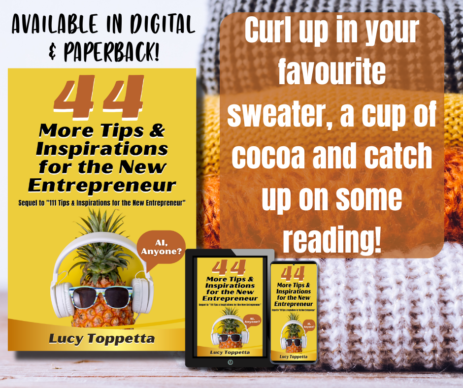 “Laugh out loud funny”, “Down to earth” “Essential life hacks”, “Inspiring”, “Uplifting”, “Makes me want to start a business”, and “Funny and serious at the same time – how do you do that?” “I love the humour and anecdotes. Lucy brings to life and shares with you her years of solid experience in marketing and social media platforms. Thank you for this gem.”
