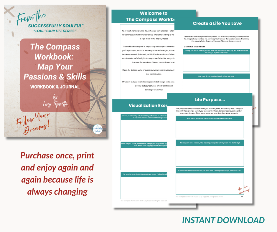 ✨ Start fresh any time – “The Compass Workbook” becomes a compass for every pivot.